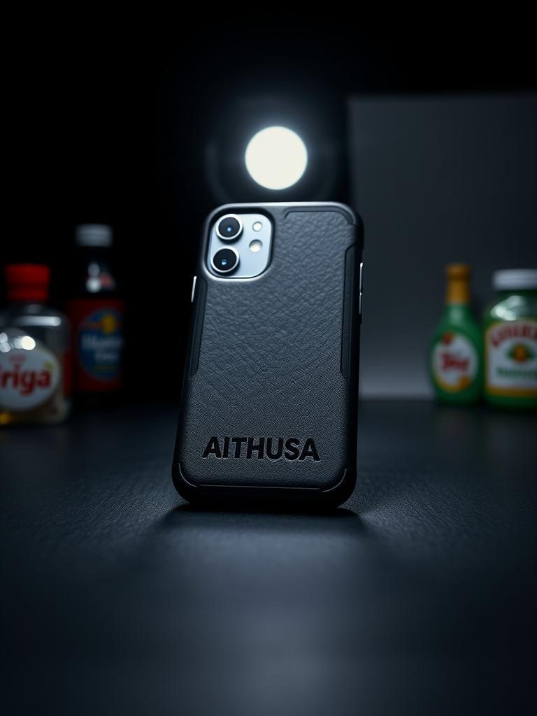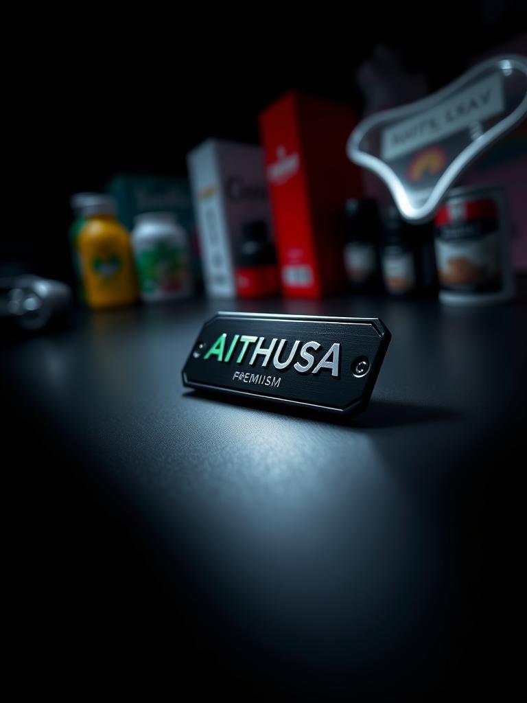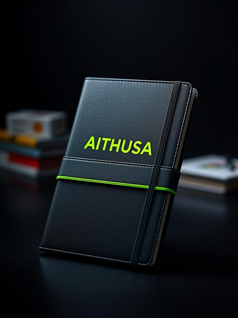19 objetos físicos Aithusa. Materiais premium, branding preciso, estética command-wear para o mundo físico.