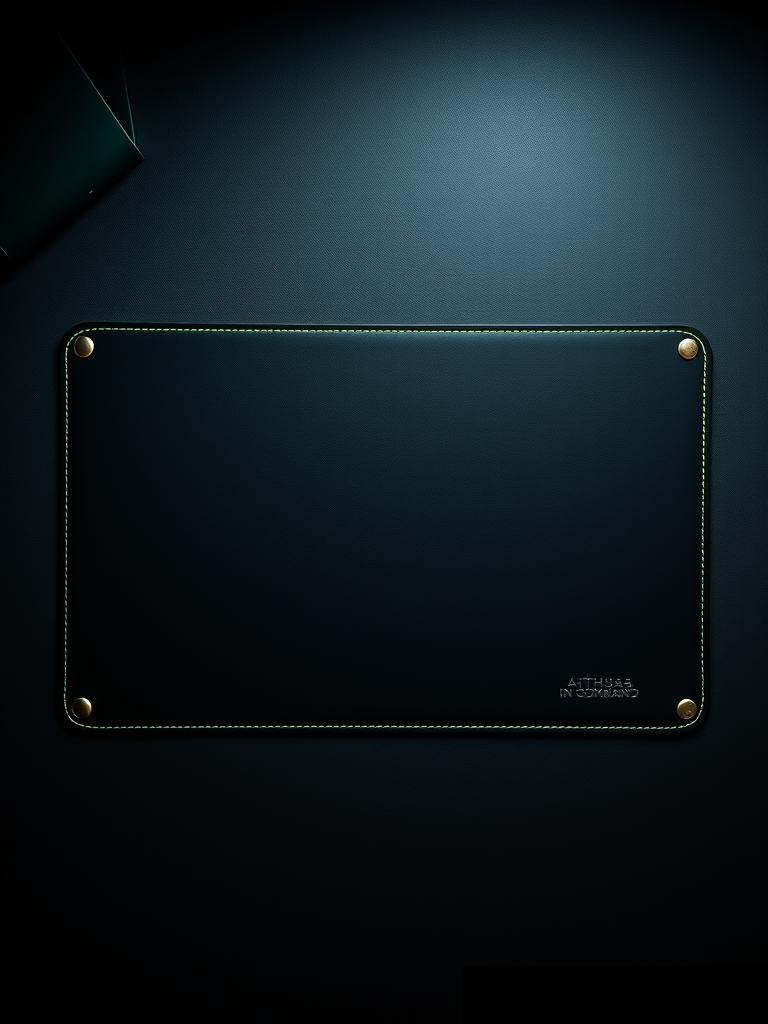 Mousepads em couro full grain e chaveiros em zamak gunmetal. Cada objeto no setup comunica o nível de quem opera.